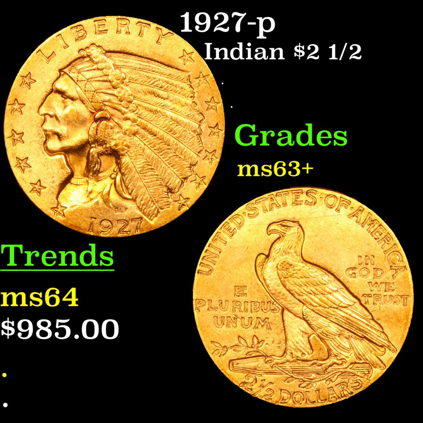 1927-p Gold Indian Quarter Eagle $2 1/2 Grades Select+ Unc.