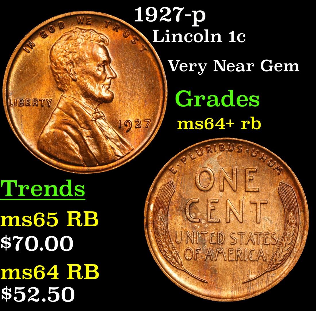 1927-p . Very Near Gem Lincoln Cent 1c Grades Choice+ Unc RB.