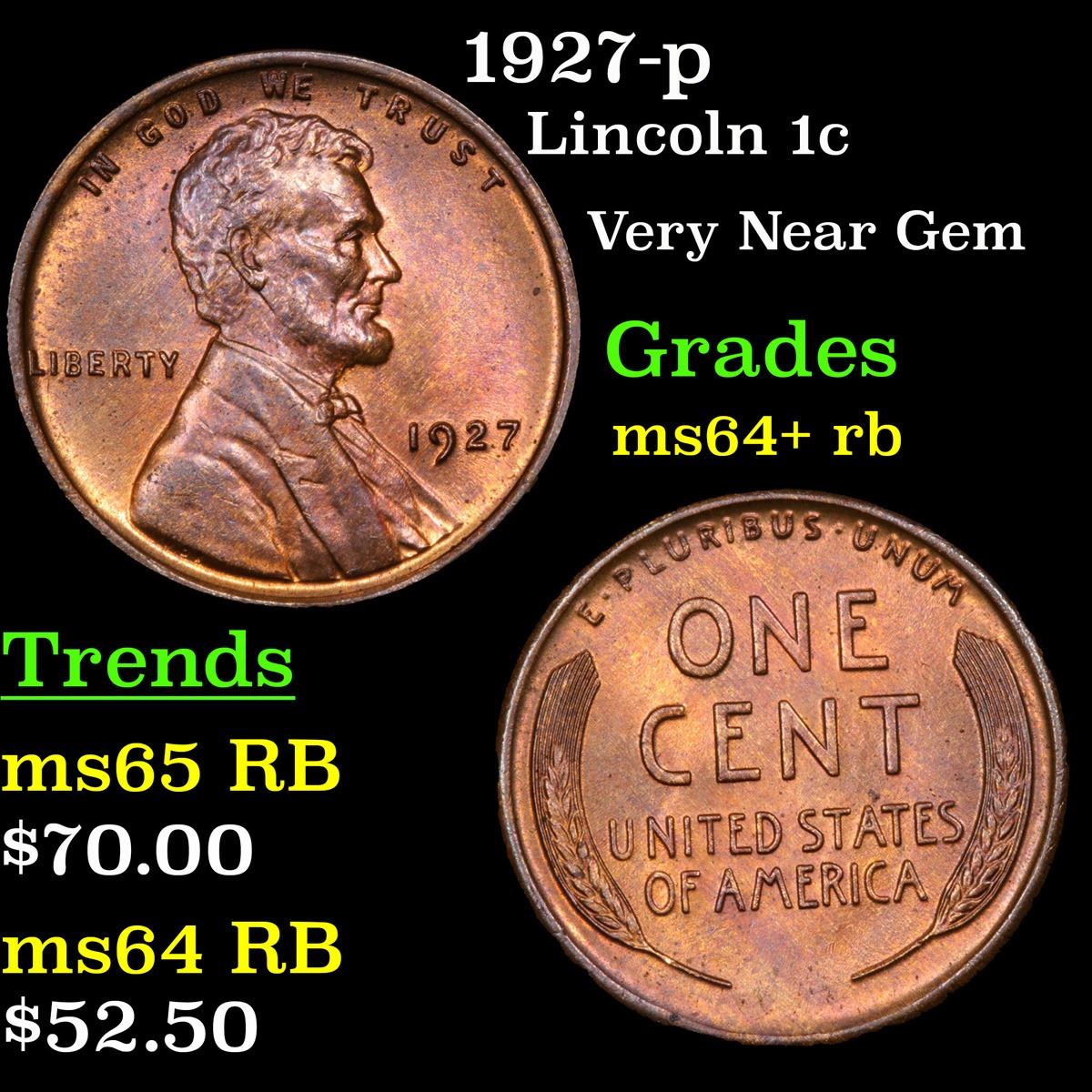 1927-p . Very Near Gem Lincoln Cent 1c Grades Choice+ Unc RB.
