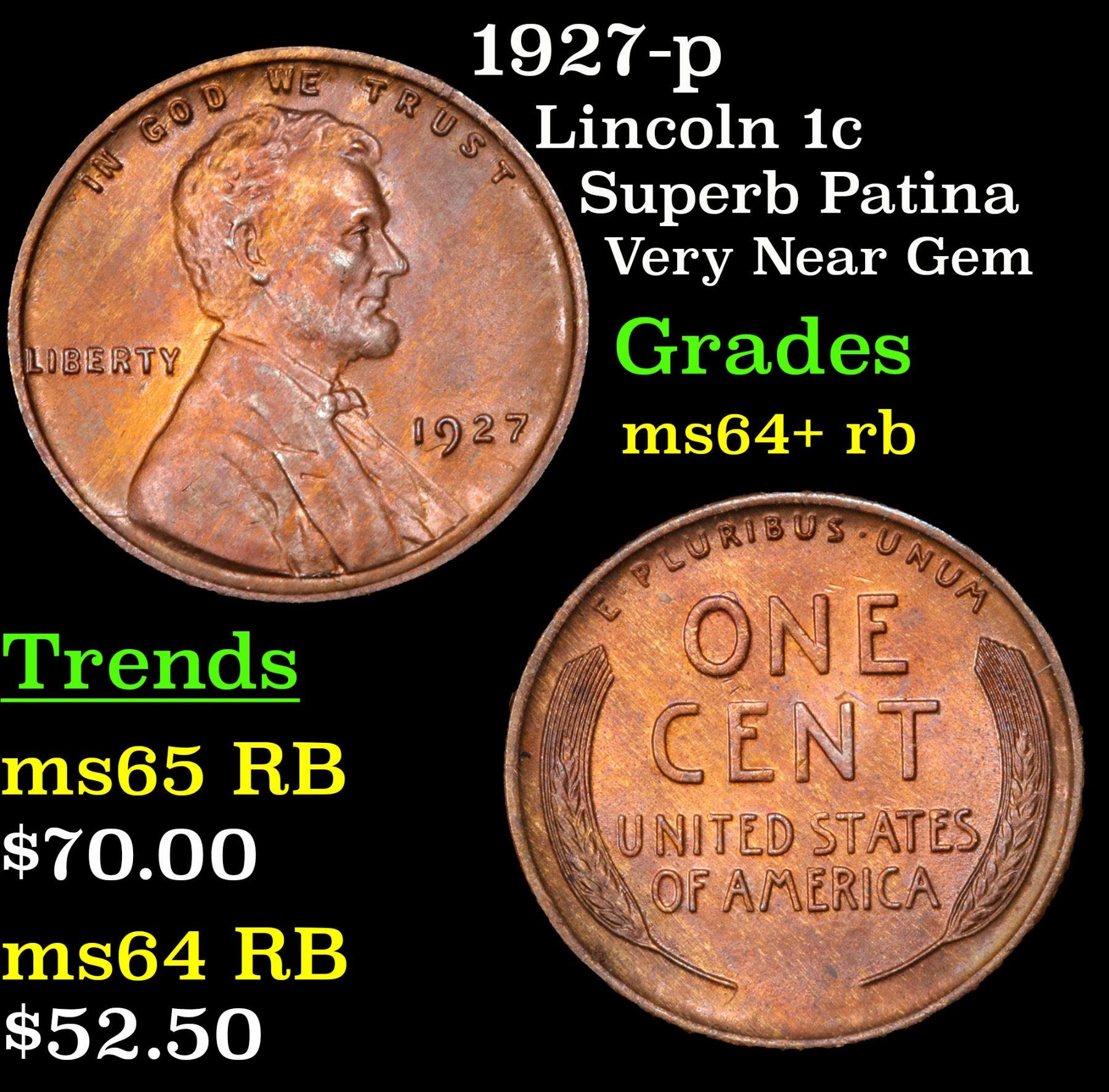 1927-p Superb Patina Very Near Gem Lincoln Cent 1c Grades Choice+ Unc RB.