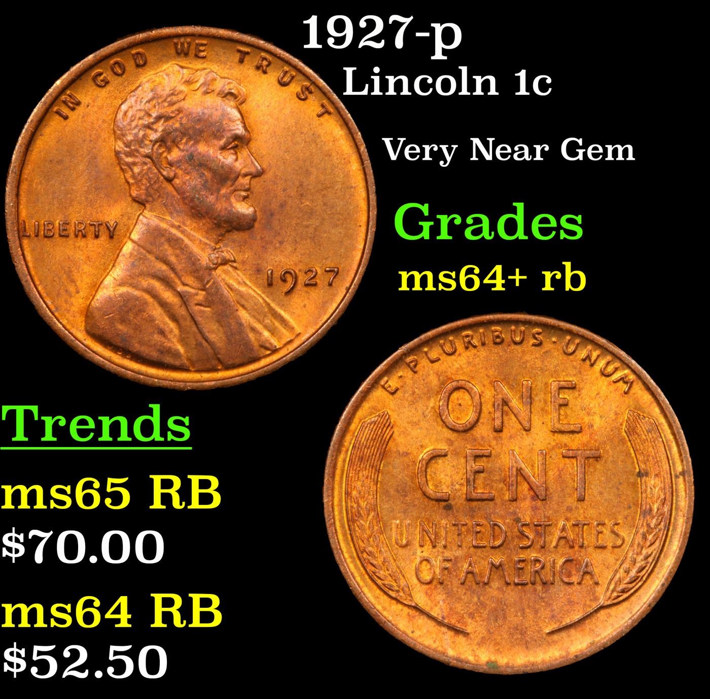 1927-p Lincoln Cent 1c Grades Choice+ Unc RB.