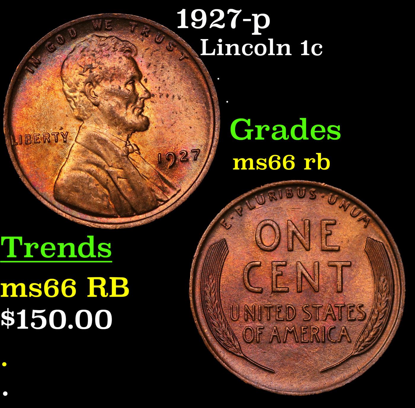 1927-p Lincoln Cent 1c Grades GEM+ Unc RB.