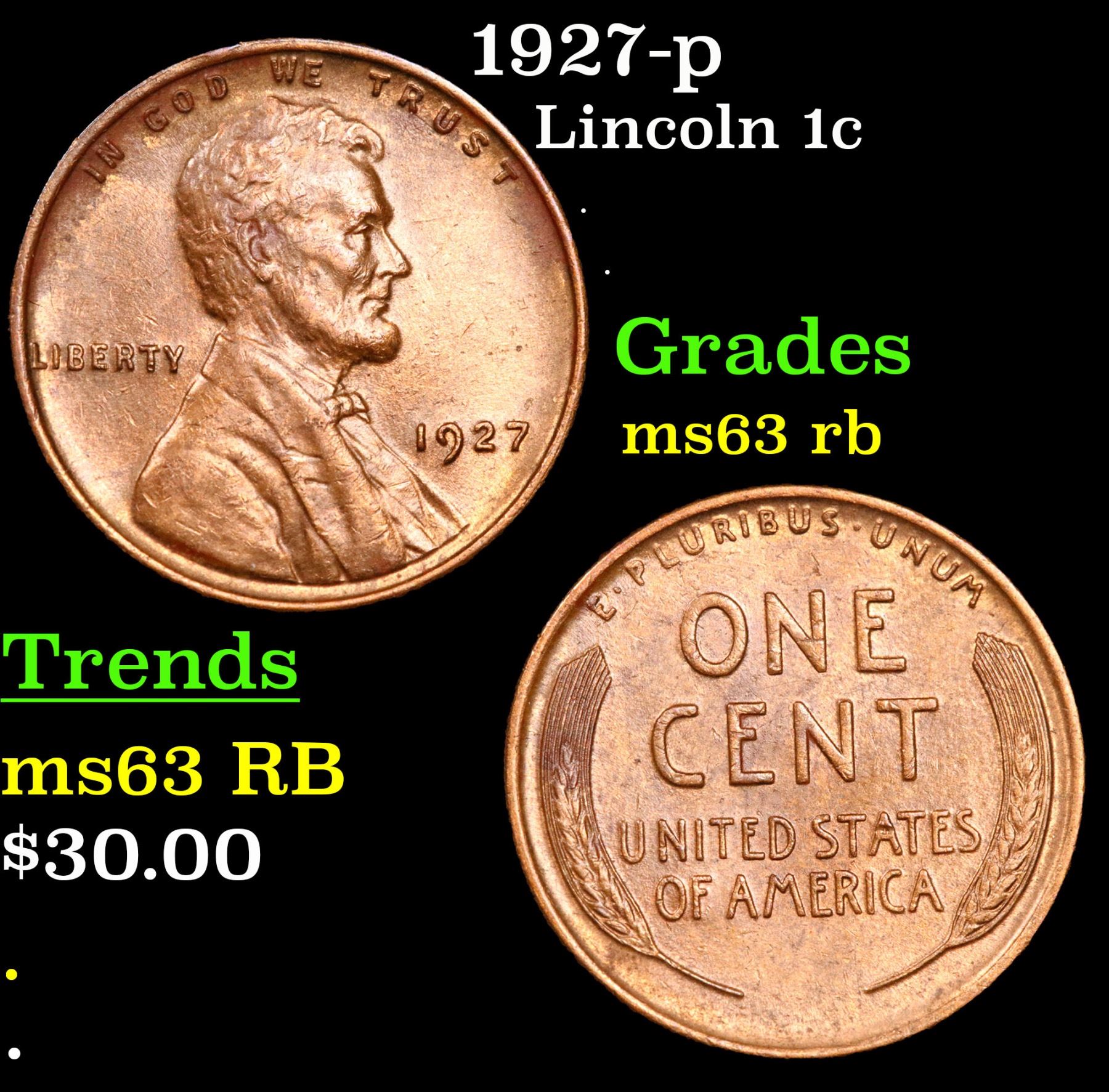 1927-p . . Lincoln Cent 1c Grades Select Unc RB.
