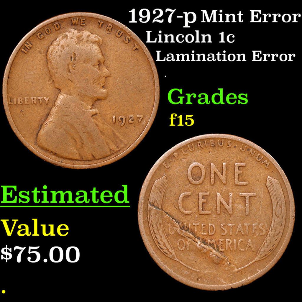 1927-p Lincoln Cent 1c Grades f+.