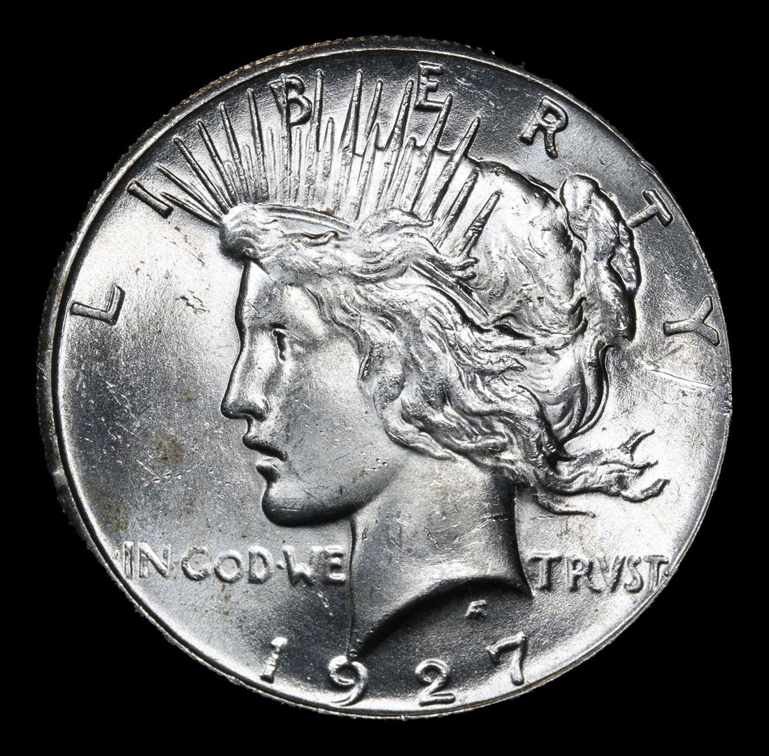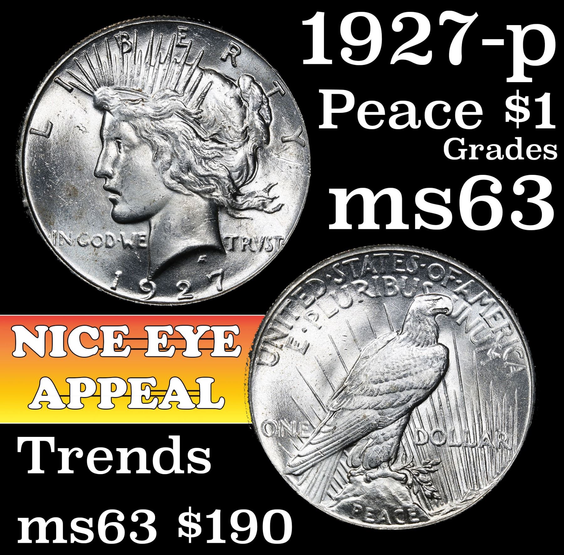 1927-p Peace Dollar $1 Grades Select Unc. The 27-p is the big sleeper of numismatics in my opinion. It has the 2nd lowest mintage in the whole Peace dollar series. Lower than the 34-s, the 21-p, yet it does not command its proper value. Good coin to own multiple of and save, in my opinion, but if you've been coming to our auctions for a while you will have seen that this has always been my opinion.
