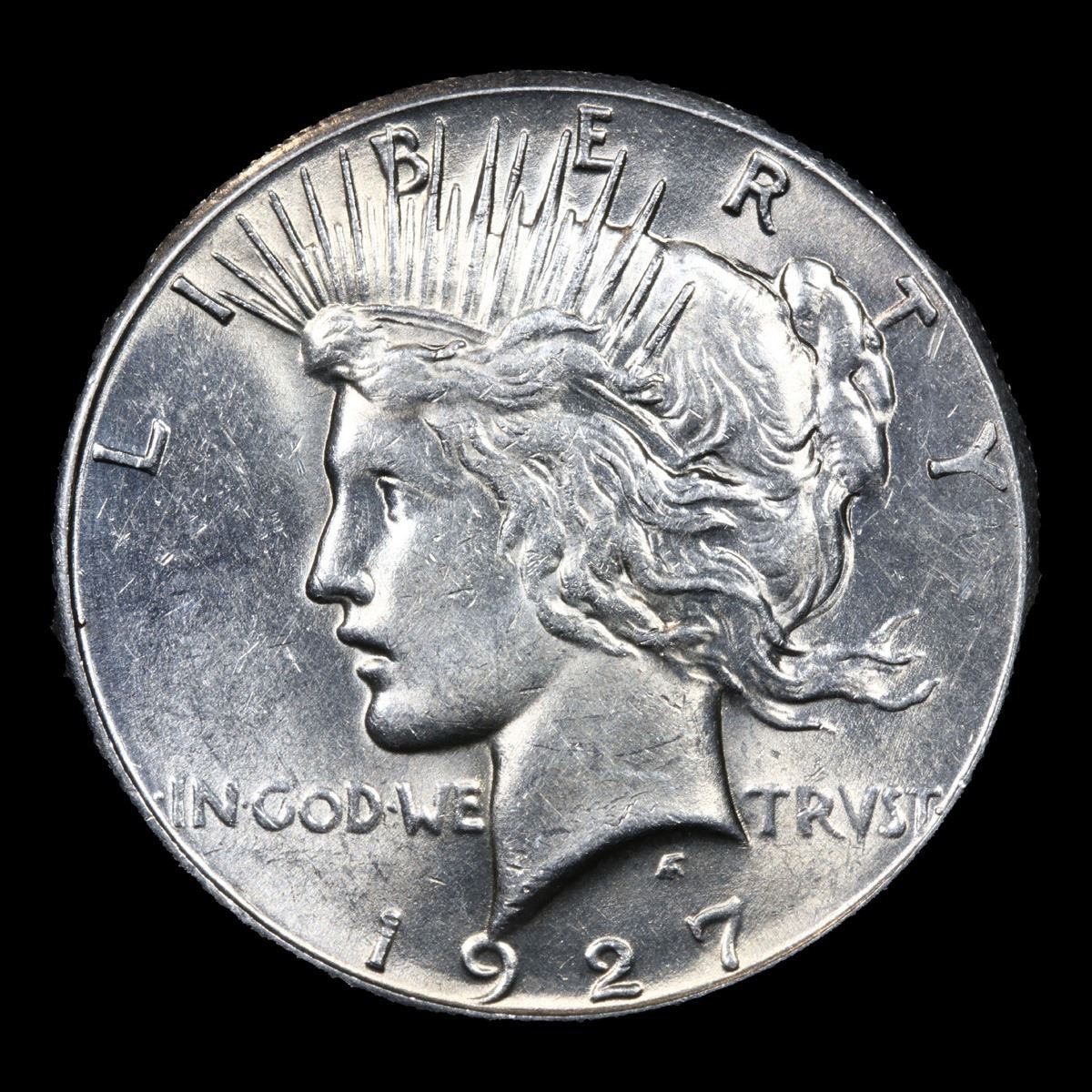 1927-p Semi Key Date . Peace Dollar $1 Grades Select Unc. The 27-p is the big sleeper of numismatics in my opinion. It has the 2nd lowest mintage in the whole Peace dollar series. Lower than the 34-s, the 21-p, yet it does not command its proper value. Good coin to own multiple of and save, in my opinion, but if you've been coming to our auctions for a while you will have seen that this has always been my opinion.