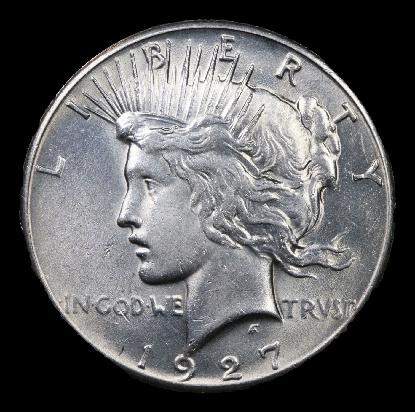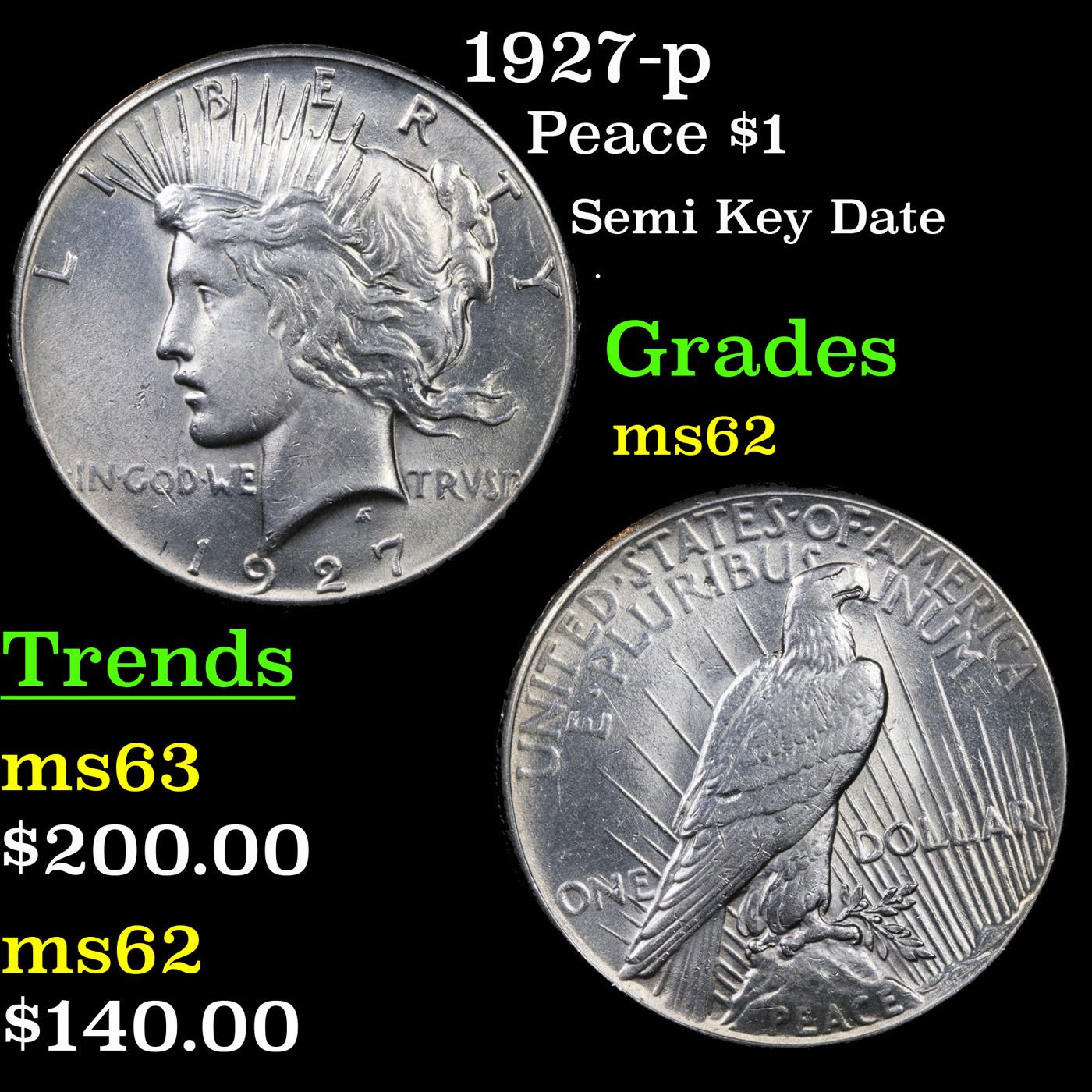 1927-p Peace Dollar $1 Grades Select Unc. The 27-p is the big sleeper of numismatics in my opinion. It has the 2nd lowest mintage in the whole Peace dollar series. Lower than the 34-s, the 21-p, yet it does not command its proper value. Good coin to own multiple of and save, in my opinion, but if you've been coming to our auctions for a while you will have seen that this has always been my opinion.