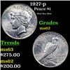 1927-p Peace Dollar $1 Grades Select Unc. The 27-p is the big sleeper of numismatics in my opinion. It has the 2nd lowest mintage in the whole Peace dollar series. Lower than the 34-s, the 21-p, yet it does not command its proper value. Good coin to own multiple of and save, in my opinion, but if you've been coming to our auctions for a while you will have seen that this has always been my opinion.