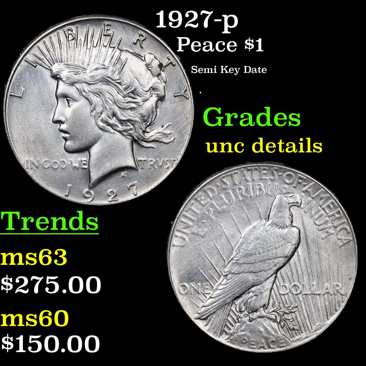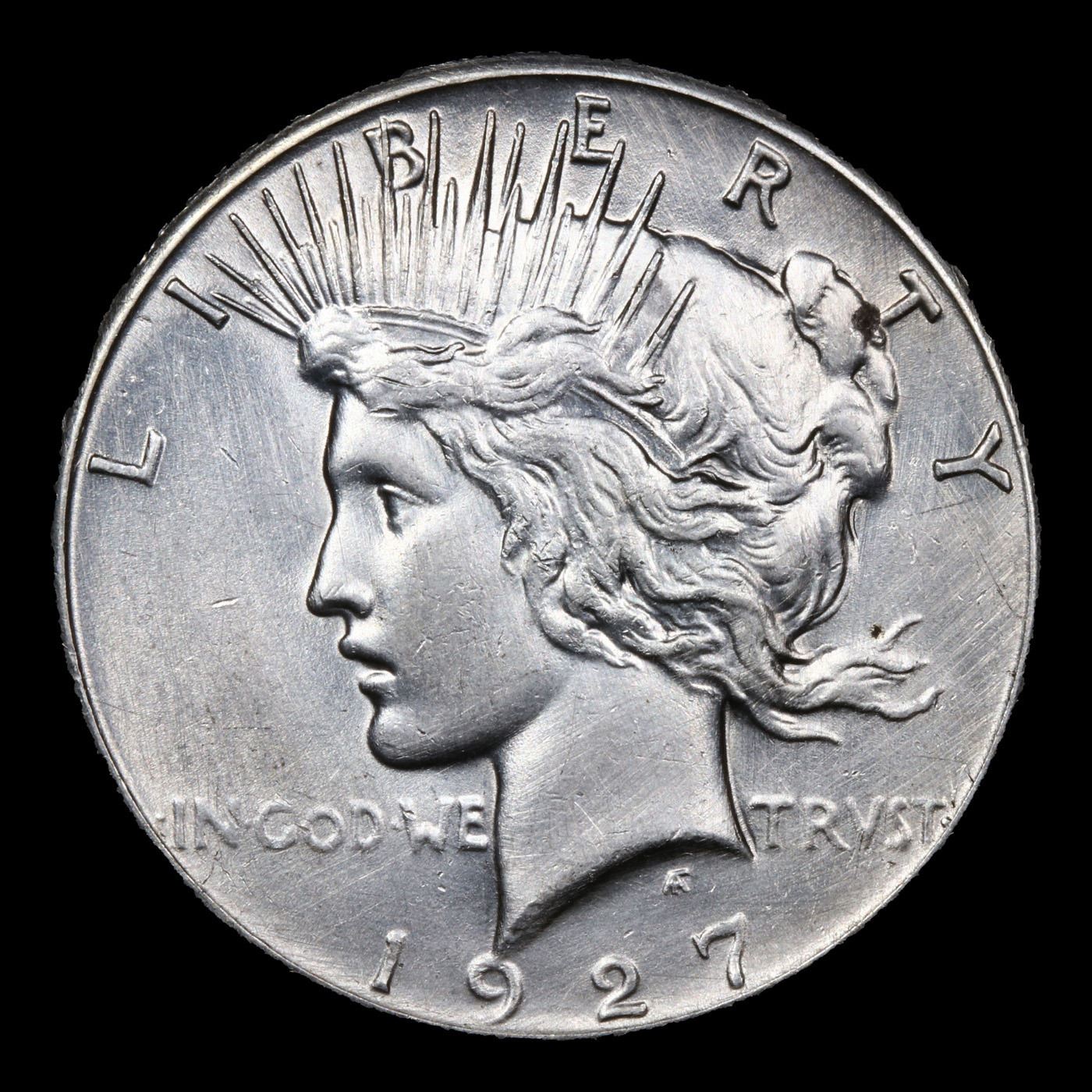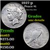 1927-p Peace Dollar $1 Grades Unc Details. The 27-p is the big sleeper of numismatics in my opinion. It has the 2nd lowest mintage in the whole Peace dollar series. Lower than the 34-s, the 21-p, yet it does not command its proper value. Good coin to own multiple of and save, in my opinion, but if you've been coming to our auctions for a while you will have seen that this has always been my opinion.