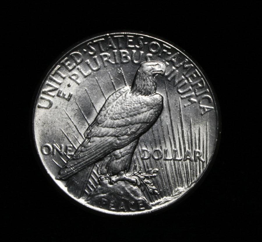 Blazing Luster and minimal bag marks highlight this 2nd lowest minted Peace dollar in the series. A really great example. Coin World's Coin Values lists ms64 at $500 and The Wholesale Greysheet bid on ms64 is $410 Estimated Value $450
