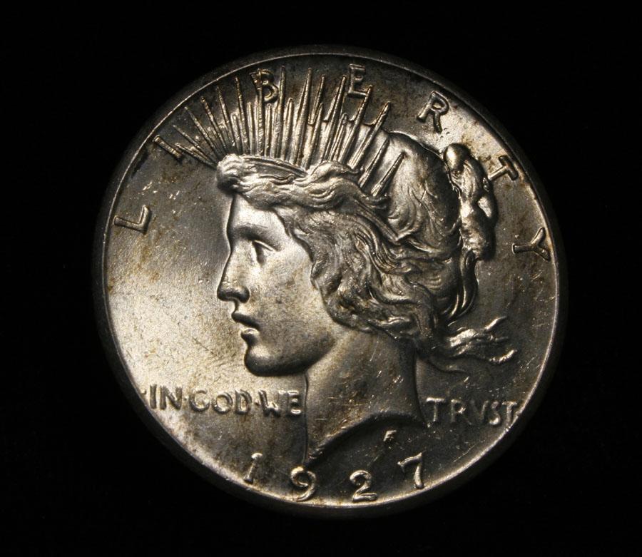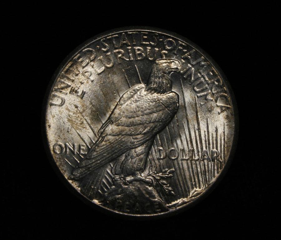 Beautiful Light golden color. All Original. A very nice and well struck Peace Dollar. Good Luster and nice Eye Appeal. Fully Gradable Example. I will offer my personal buy back guarantee, that this coin is all original and will not come back Ungradeable by any major grading service. 2nd Lowest Minted Coin in the entire Peace Dollar Series and exceedingly rare in Gem Uncirculated. Coin World's Coin Values lists ms64 at $500 and The Wholesale Greysheet bid on ms64 is $410 Estimated Value $450