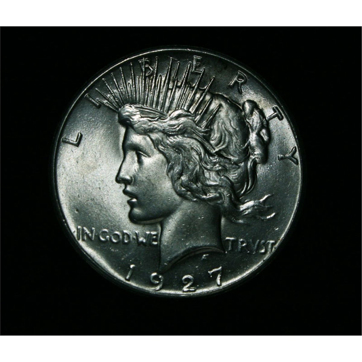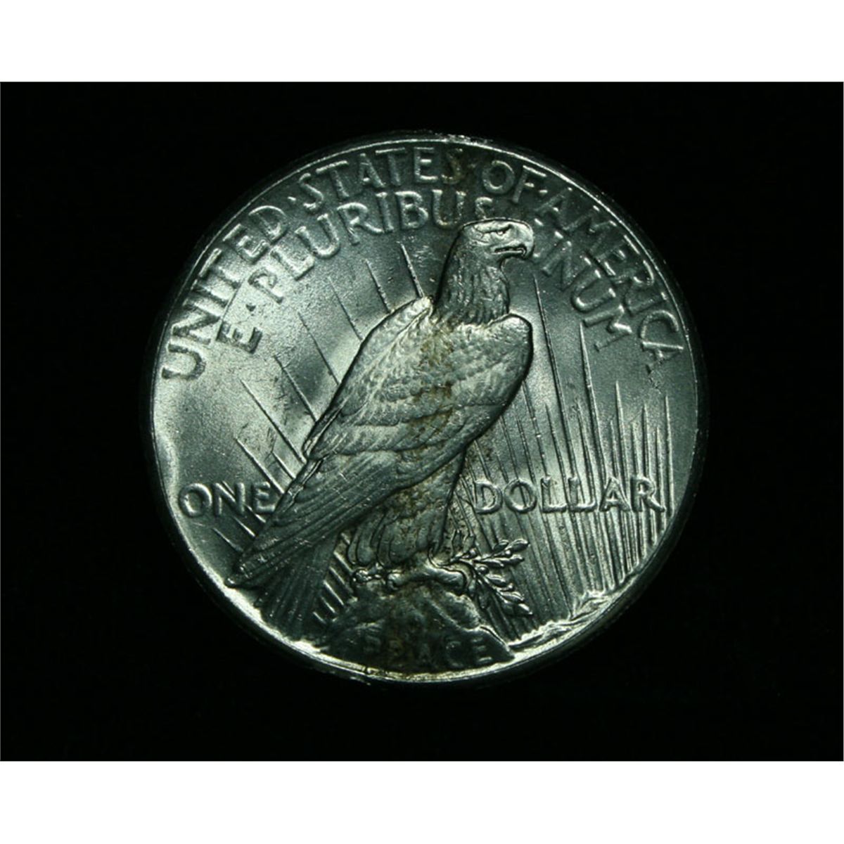 Nice white example. Good luster and eye appeal. 2nd Lowest Mintage in the entire Peace Dollar Series. PCGS's Price Guide lists ms63 at $195 and NGC's Price Guide lists ms63 at $206. The Wholesale Greysheet lists ms63 at $150. Estimated Value $175