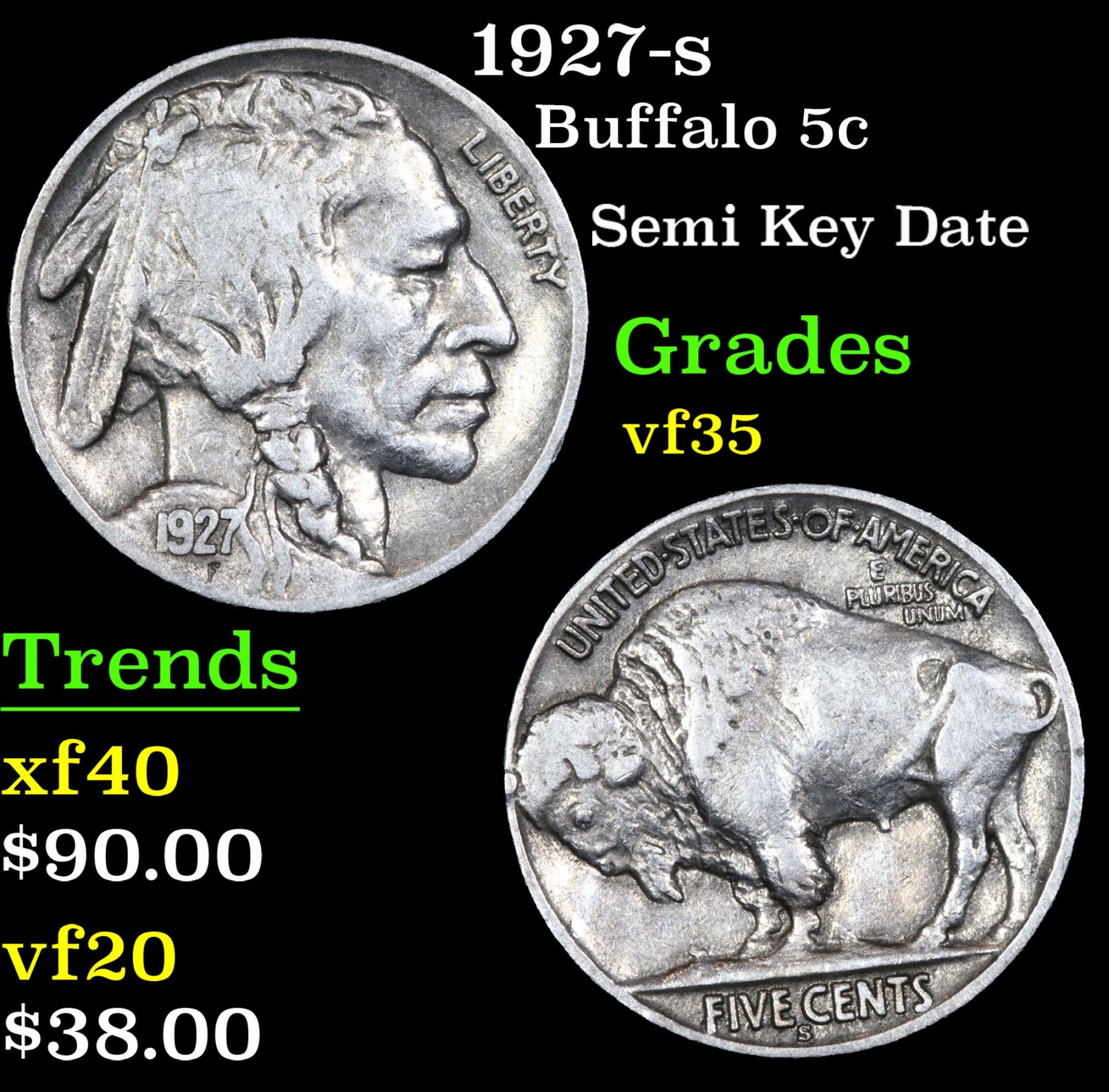 1927-s Semi Key Date . Buffalo Nickel 5c Grades vf++.