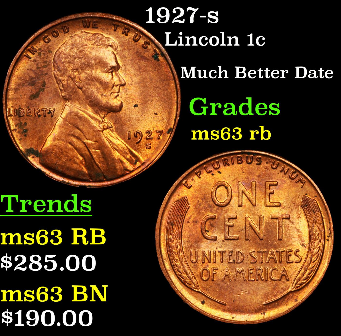 1927-s Lincoln Cent 1c Grades Select Unc RB.