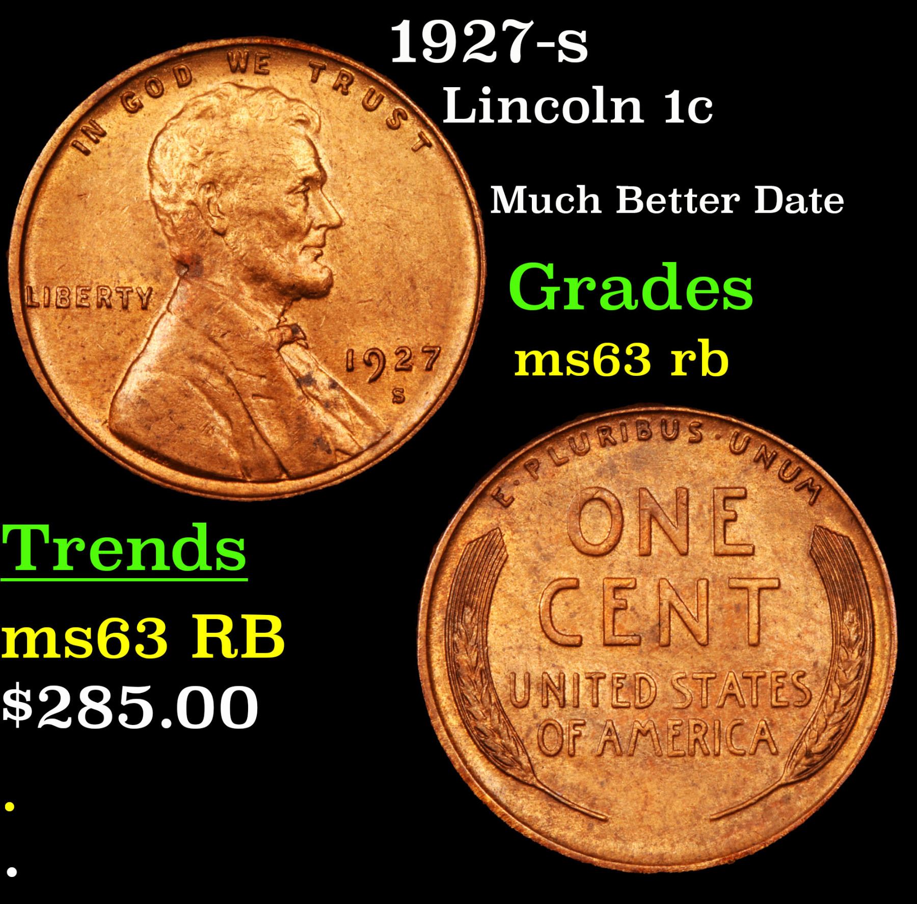 1927-s Lincoln Cent 1c Grades Select Unc RB.