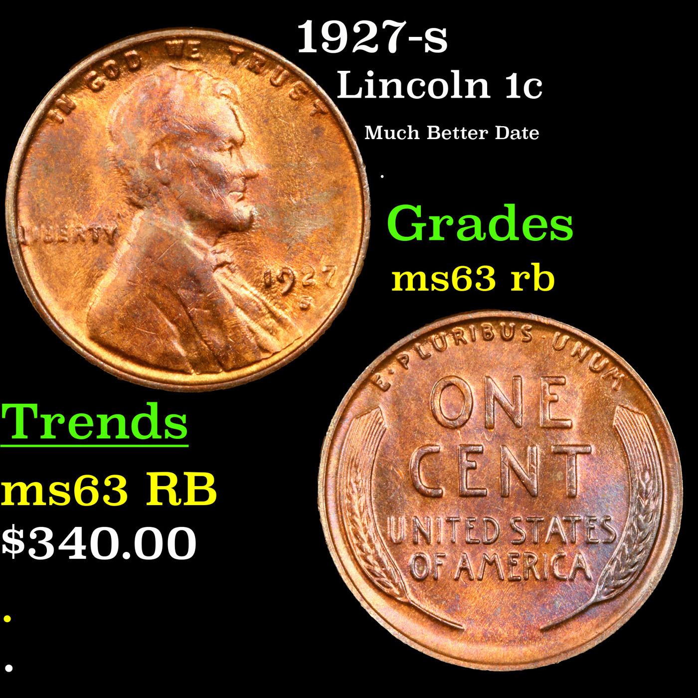 1927-s Lincoln Cent 1c Grades Select Unc RB.