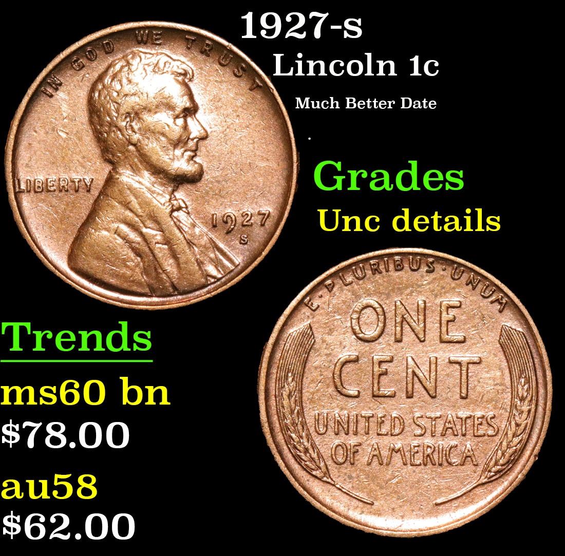 1927-s Much Better Date . Lincoln Cent 1c Grades Unc Details.