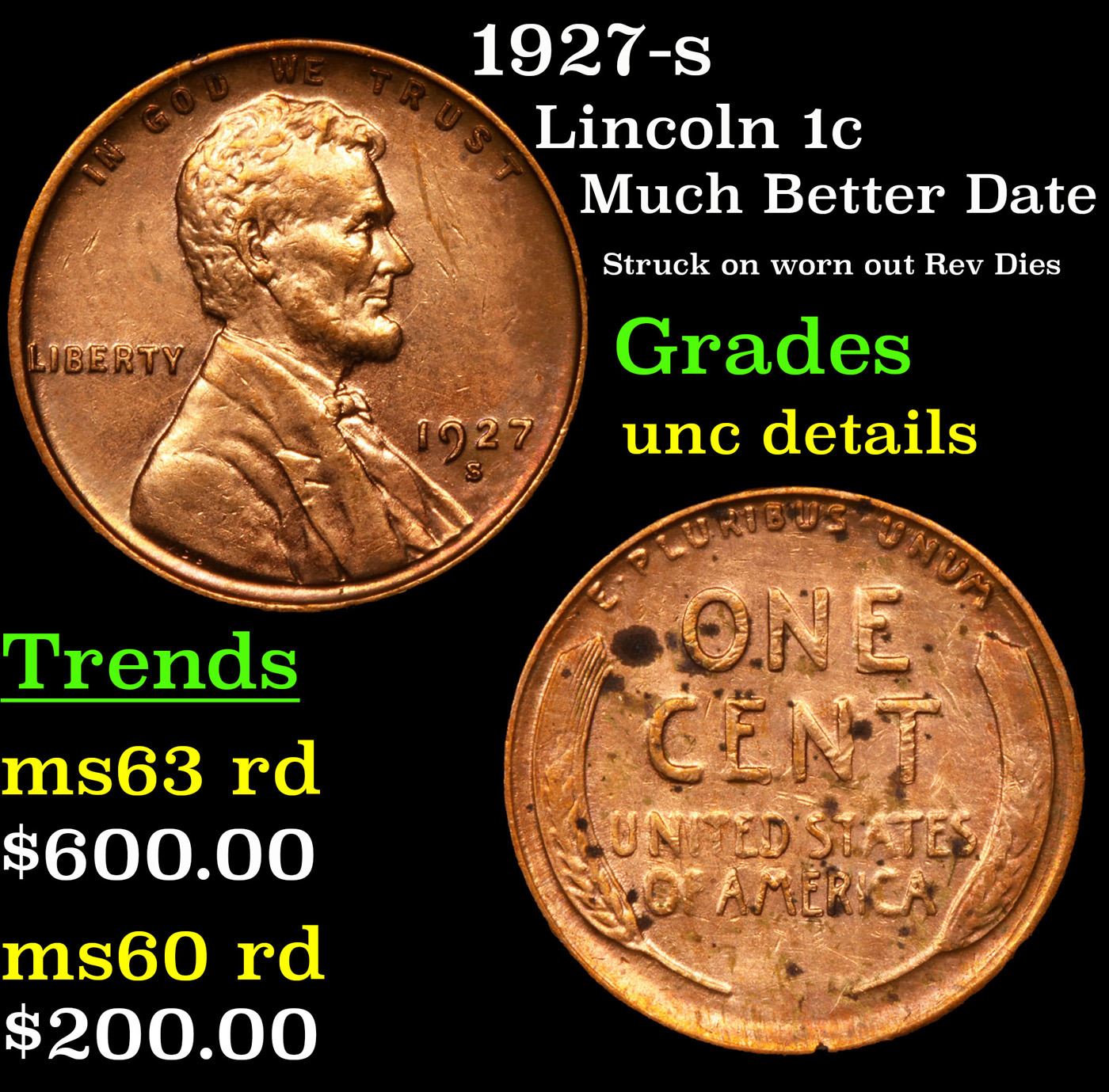 1927-s Lincoln Cent 1c Grades Unc Details.