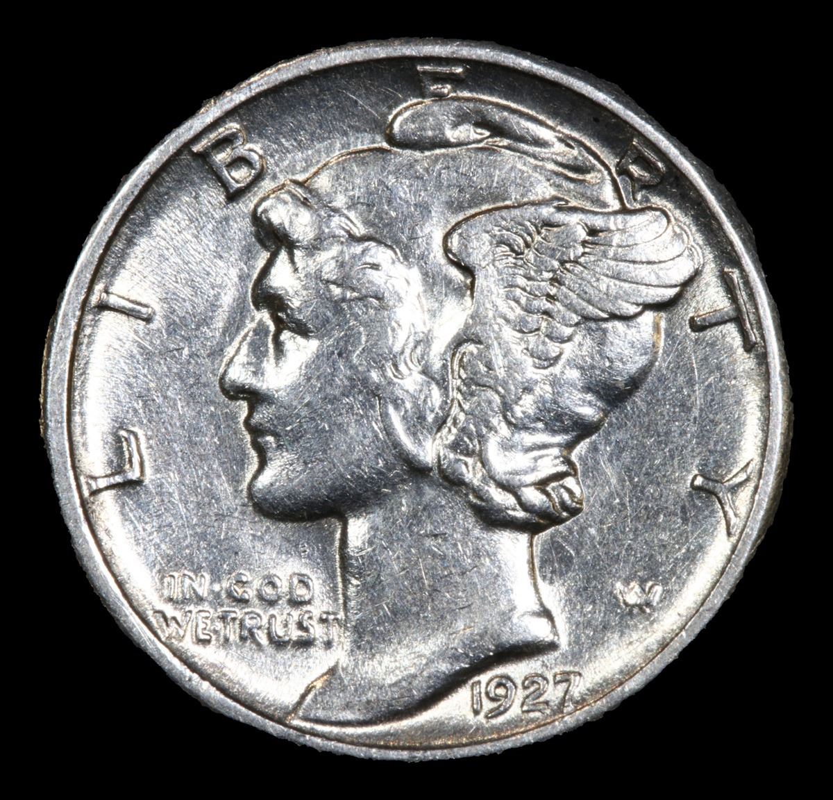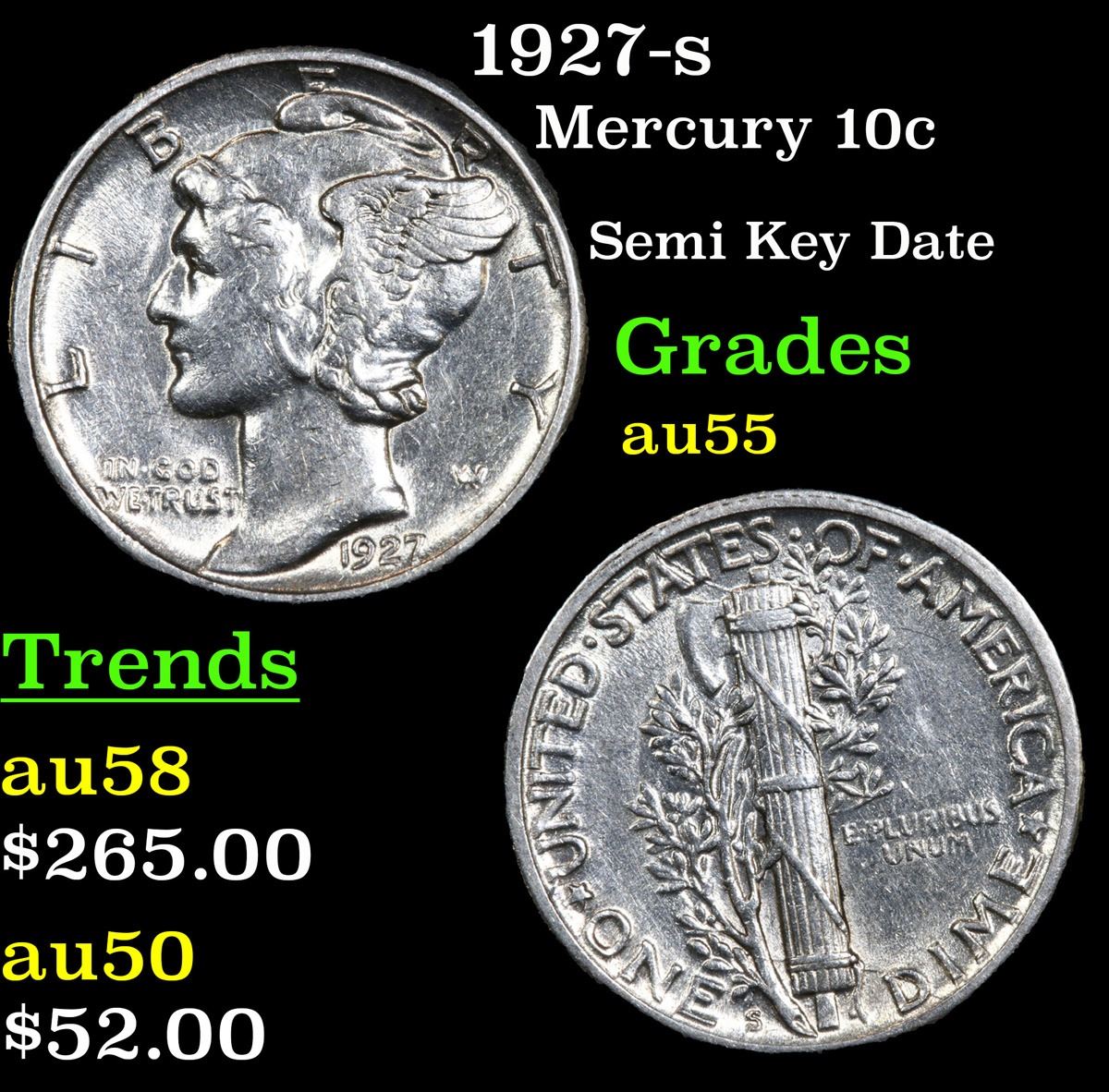 1927-s Semi Key Date . Mercury Dime 10c Grades Choice AU.
