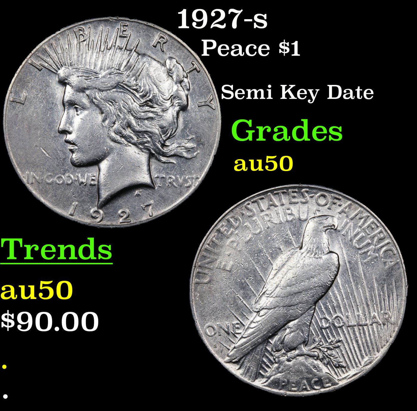 1927-s Peace Dollar $1 Grades AU, Almost Unc