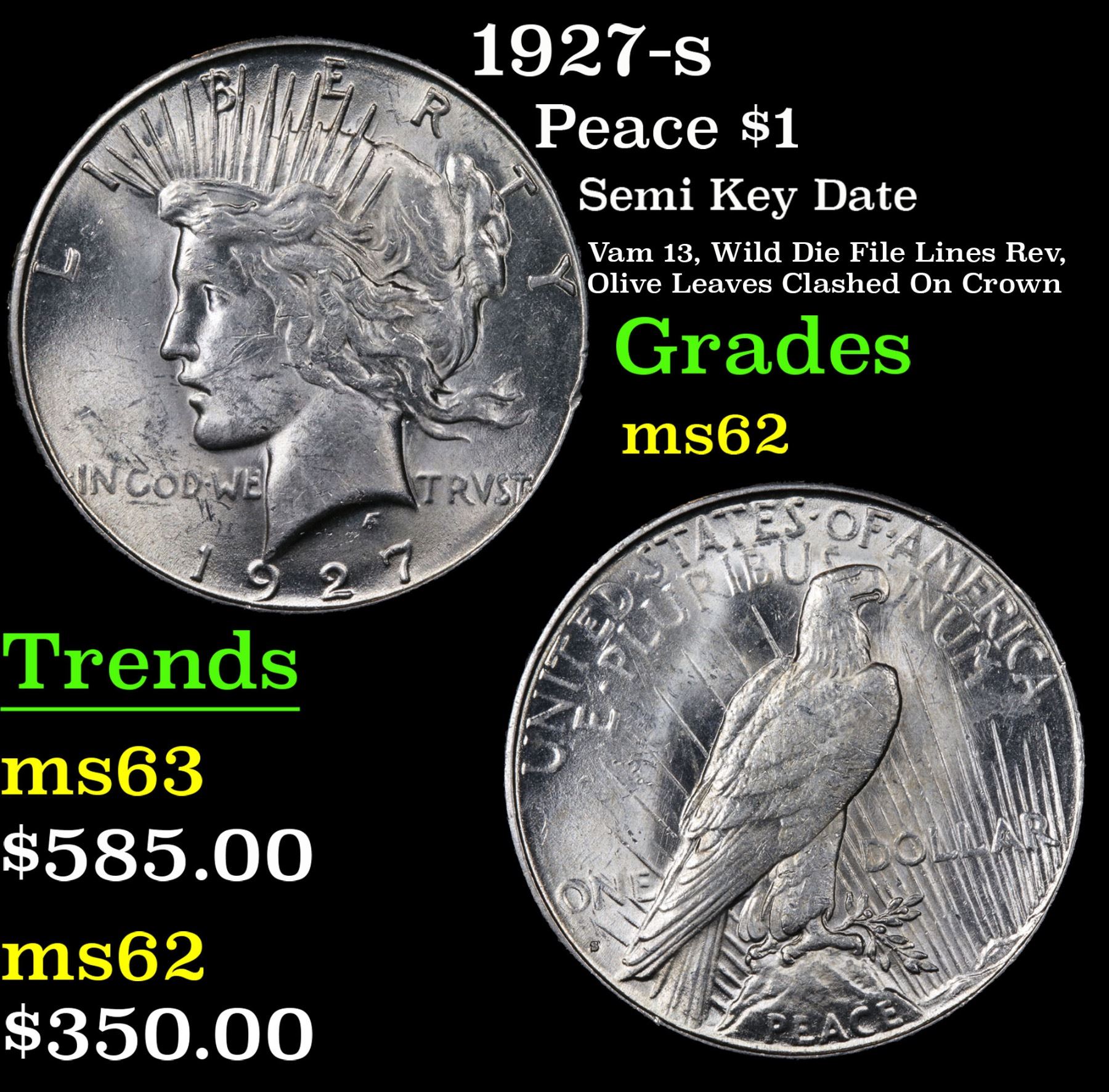 1927-s Semi Key Date Vam 13, Wild Die File Lines Rev, Olive Leaves Clashed On Crown Peace Dollar $1 Grades Select Unc.
