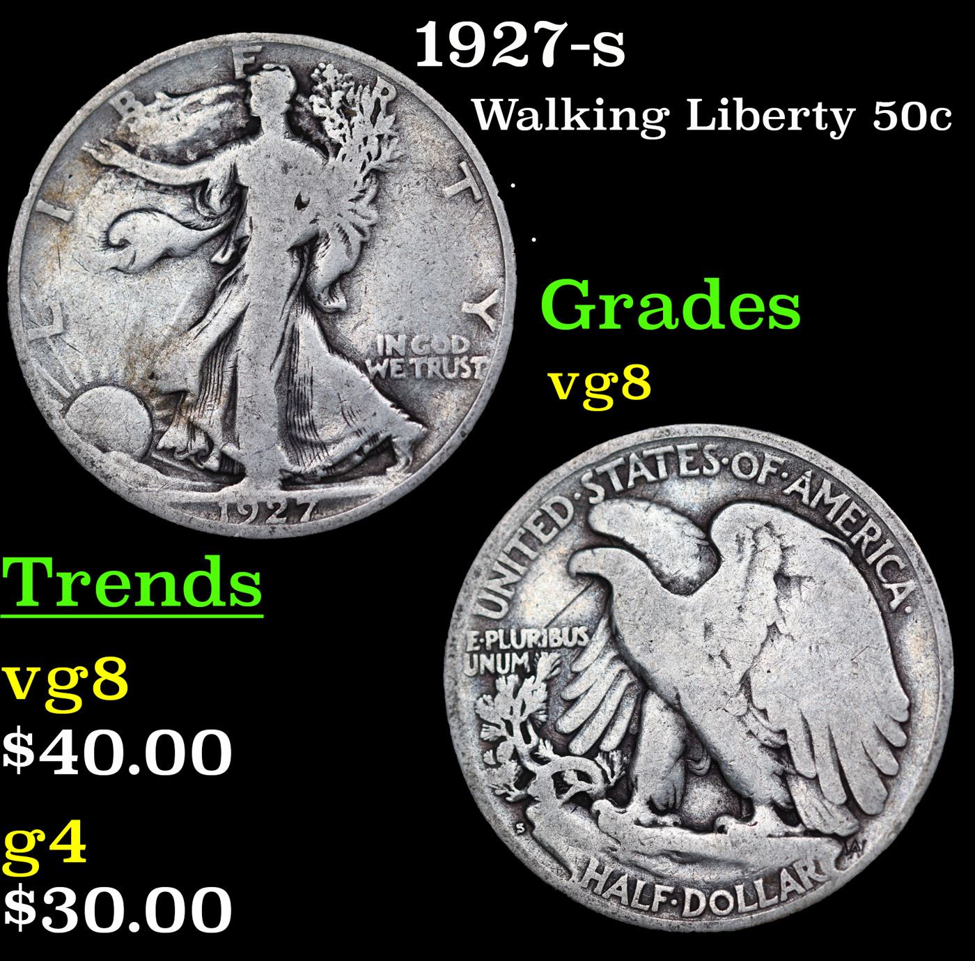 1927-s Walking Liberty Half Dollar 50c Grades vg, very good.