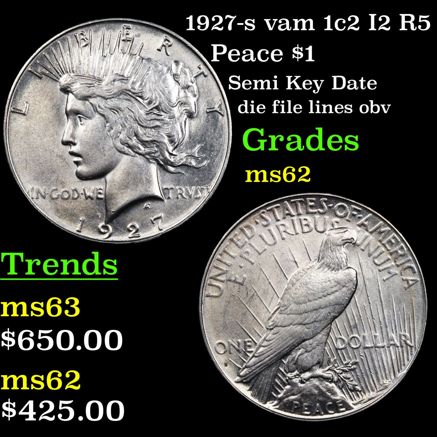 1927-s vam 1c2 I2 R5 Peace Dollar $1 Grades Select Unc.