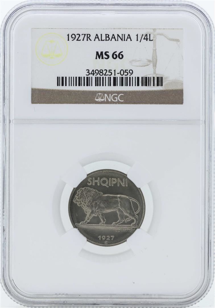 One 1927R Albania 1/4 Leku Coin NGC MS66. NGC Certified.