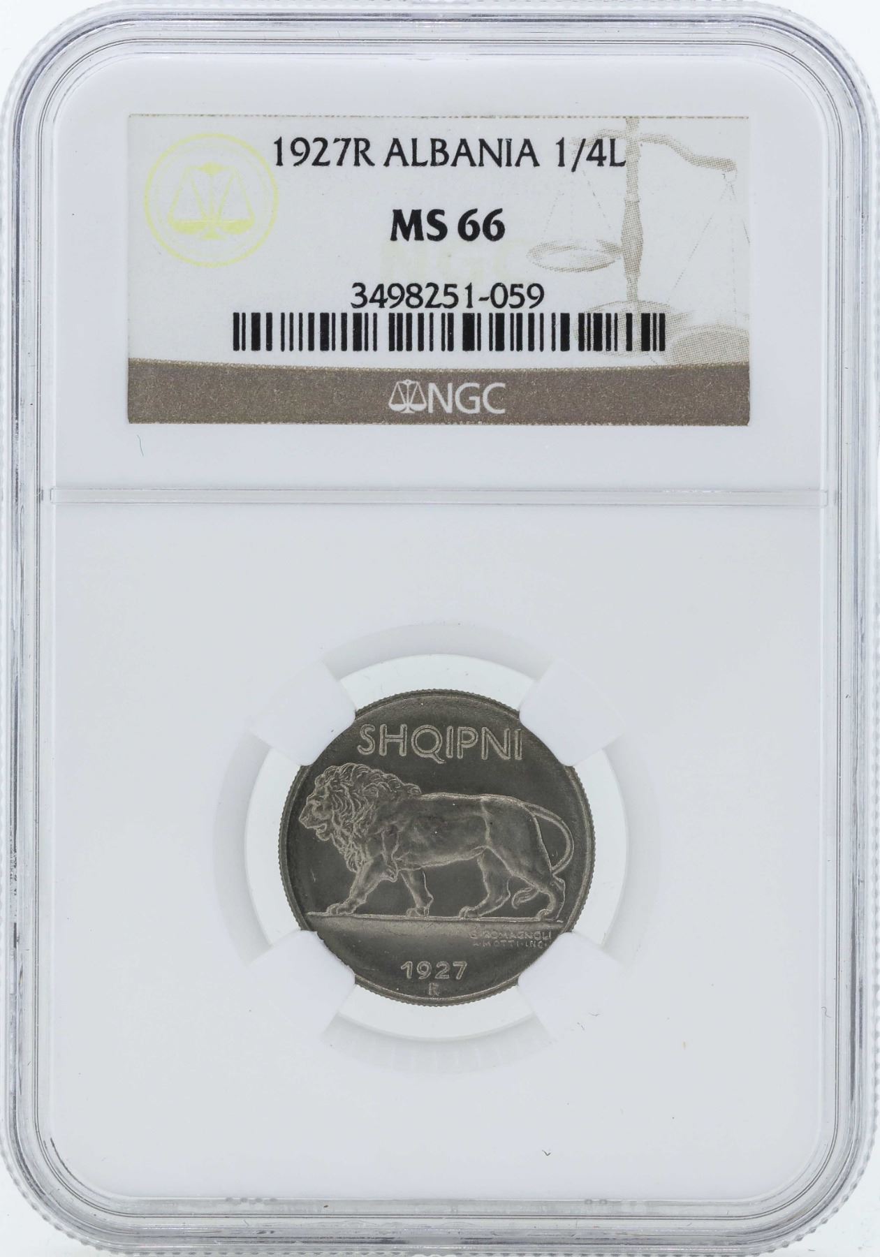 One 1927R Albania 1/4 Leku Coin NGC MS66.