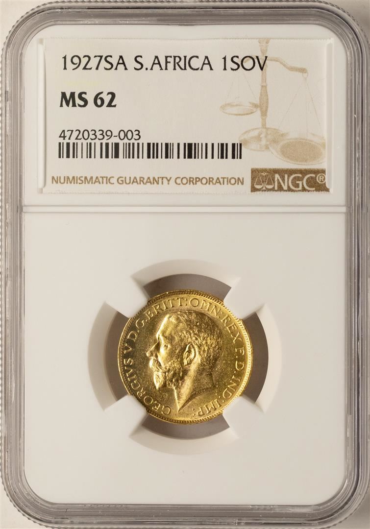 One 1927SA South Africa Sovereign Gold Coin NGC MS62. NGC Certified.