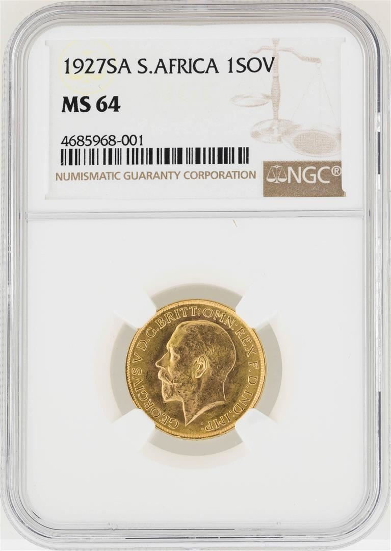 One 1927SA South Africa Sovereign Gold Coin NGC MS64. NGC Certified.