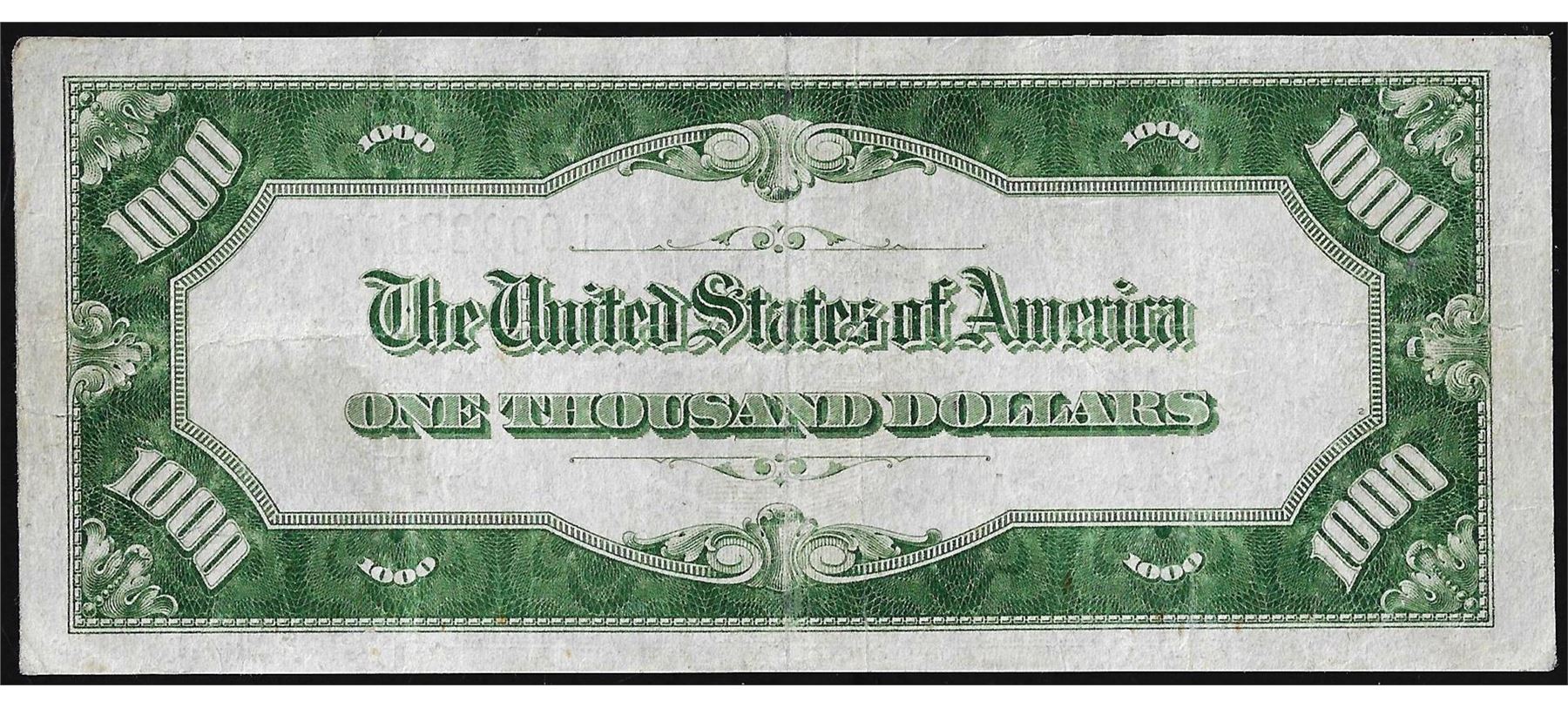 One 1928 $1,000 Federal Reserve Note San Francisco.