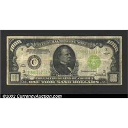 1928 $1,000 Light Green Seal Federal Reserve Note, Fr-2210-C, Fine.