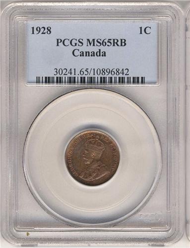 1928 1¢. A great small size cent graded PCGS MS65RB with lots of lustre.