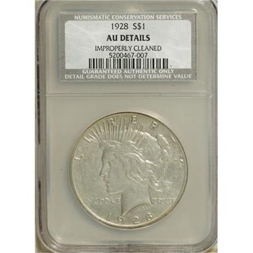 <B>1928 $1 --Improperly Cleaned--NCS. AU Details.</B></I> NGC Census: (0/0). PCGS Population (0/0). Mintage: 360,649. (#7373)<BR><BR><B>Coin Engraver:</B> Anthony de Francisci<BR><BR><b>Shipping:</b> Coins & Currency (<a target="_blank" href="http://www.heritageauctions.com/common/shipping.php">view shipping information</a>)