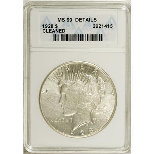 1928 $1 --Cleaned--ANACS. MS60 Details. NGC Census: