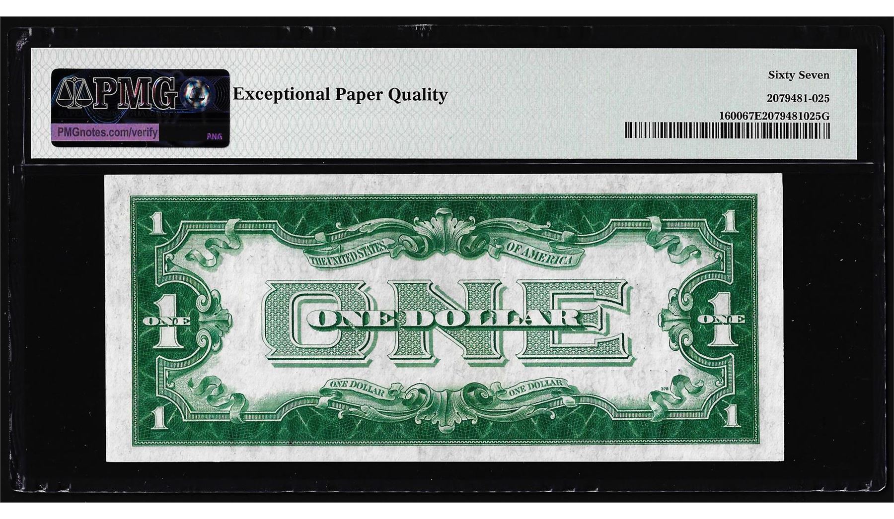 One 1928 $1 Funnyback Silver Certificate Note Fr.1600 PMG Superb Gem Uncirculated 67EPQ. PMG Certified.