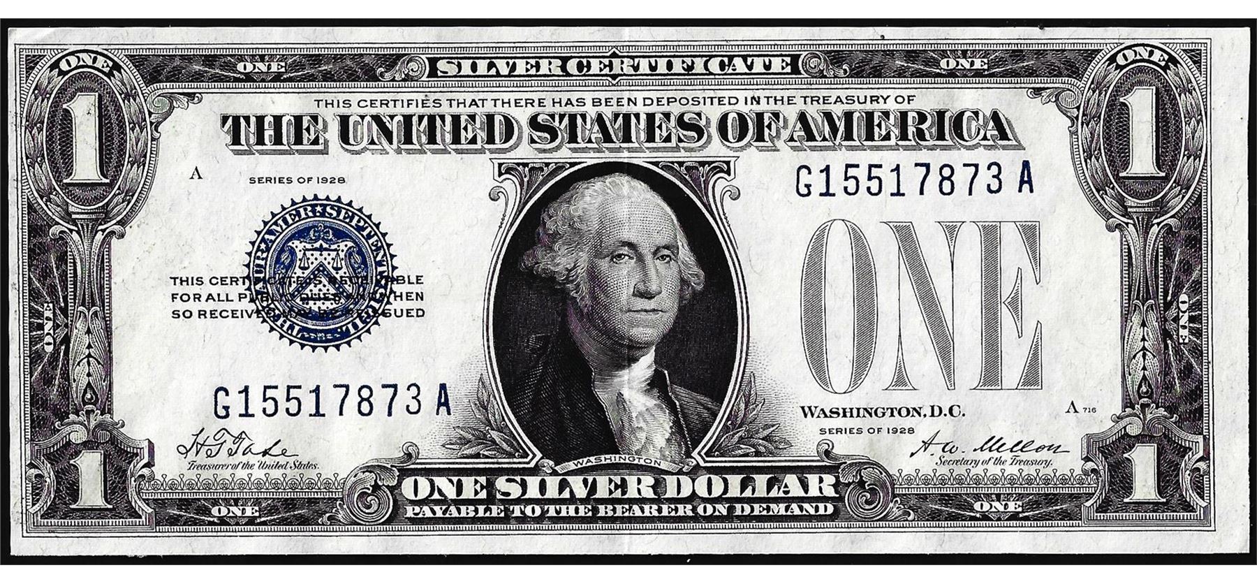 One 1928 $1 Funnyback Silver Certificate Note.