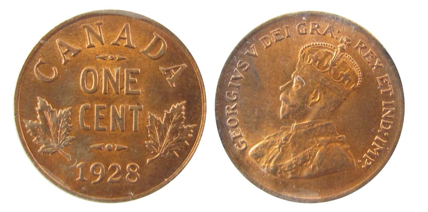 1928 1¢ ICCS MS65RD. Gem 90% red with full lustre.