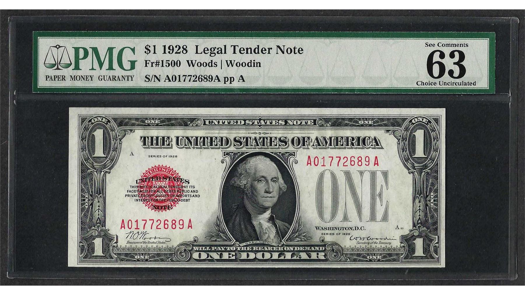 1928 $1 Legal Tender Note Fr.1500 PMG Choice Uncirculated 63EPQ