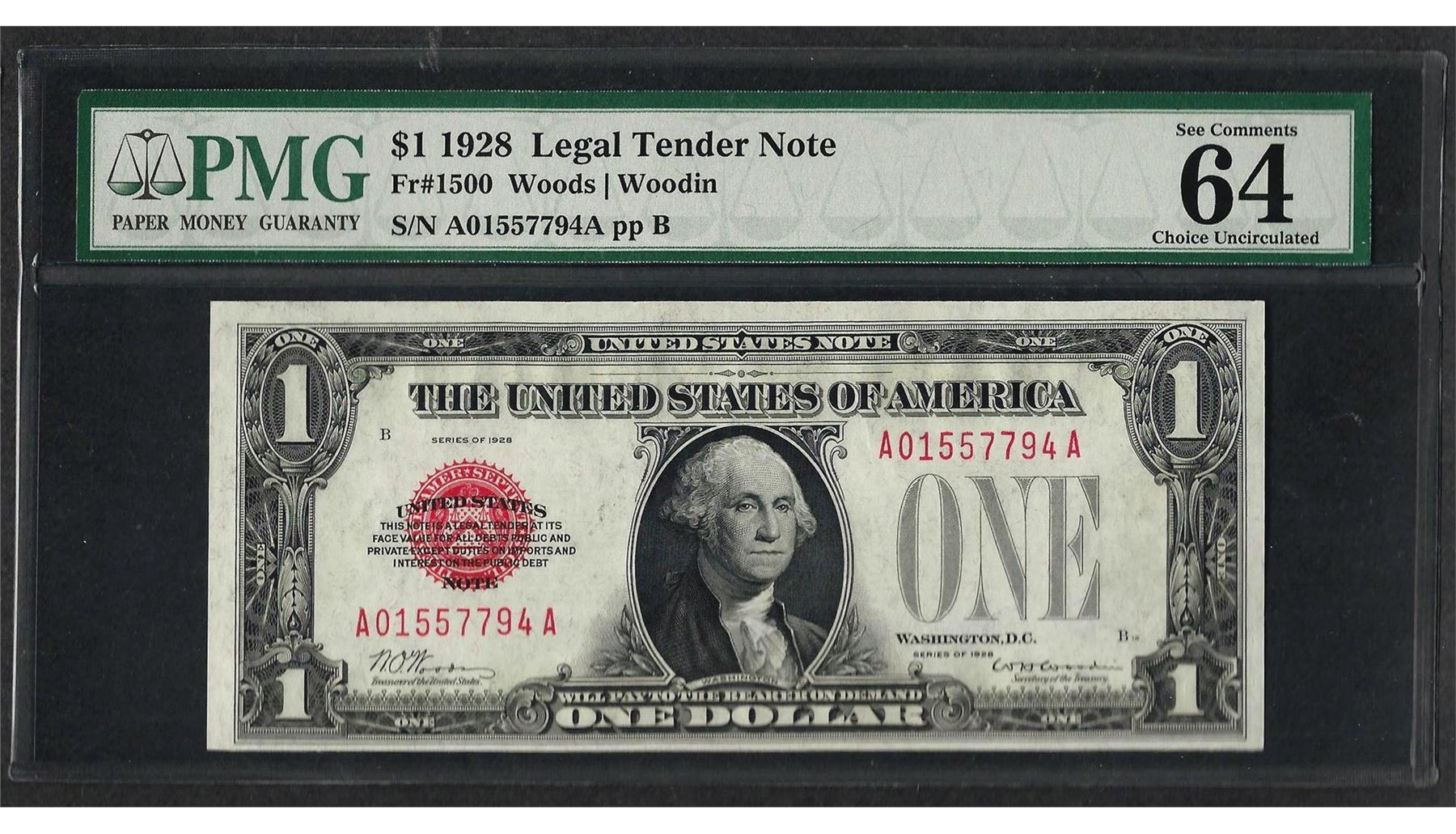 1928 $1 Legal Tender Note Fr.1500 PMG Choice Uncirculated 64EPQ