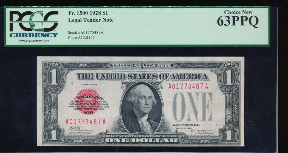 One 1928 $1 Legal Tender Note PCGS 63PPQ.