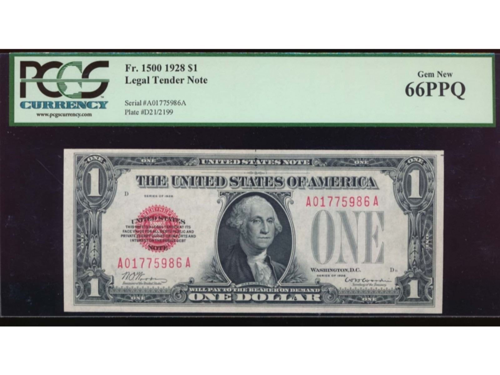 One 1928 $1 Legal Tender Note PCGS 66PPQ.