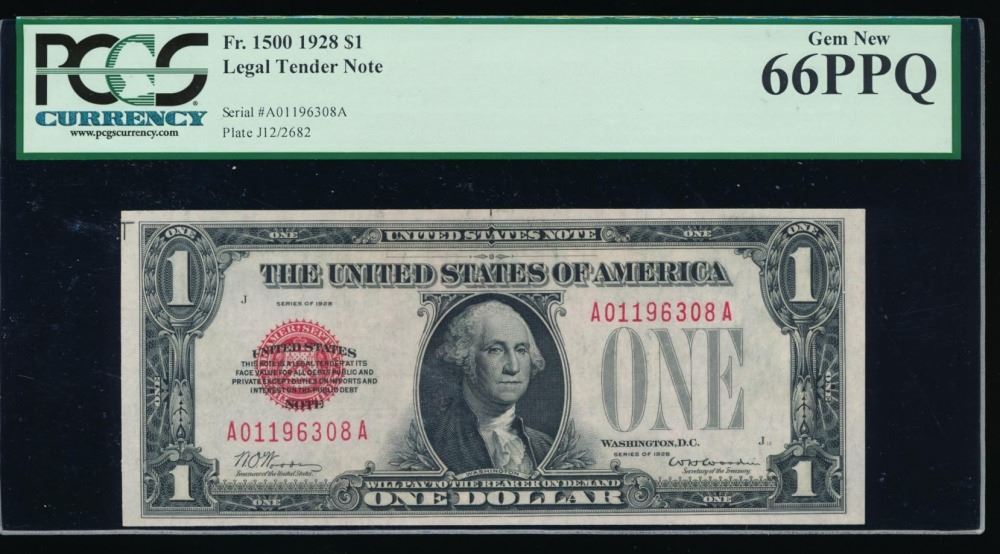One 1928 $1 Legal Tender Note PCGS 66PPQ.