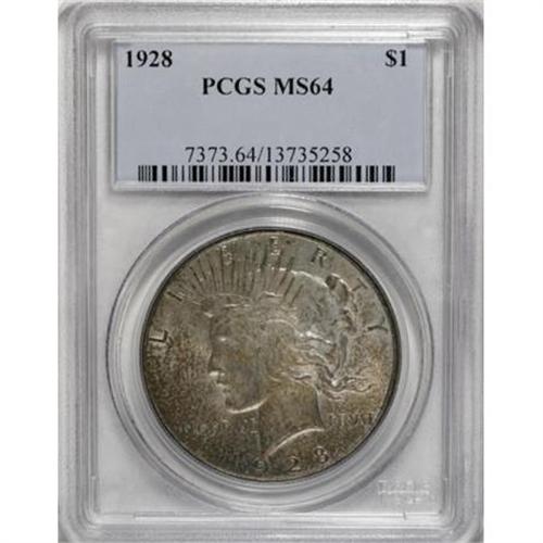 <B>1928 $1 MS64 PCGS.</B></I> Dusky golden-brown toning subdues the satiny luster of this key-date coin. The surfaces are undoubtedly original, with no evidence that it has ever been cleaned.<BR><BR><B>Coin Engraver:</B> Anthony de Francisci<BR><BR><b>Shipping:</b> Coins & Currency (<a target="_blank" href="http://www.heritageauctions.com/common/shipping.php">view shipping information</a>)