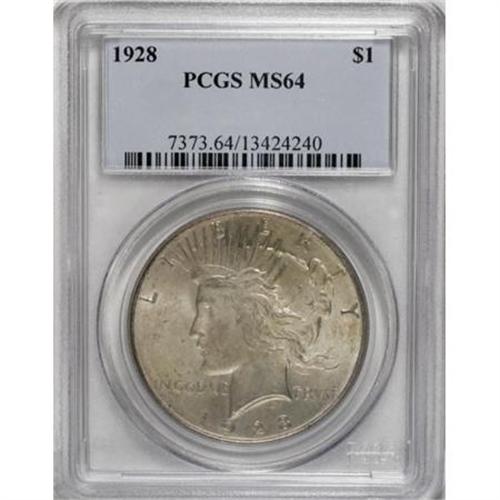 <B>1928 $1 MS64 PCGS.</B></I> A fully original example with faint heather color over ivory luster. Sharp design elements accompany pristine surfaces.<BR><BR><B>Coin Engraver:</B> Anthony de Francisci<BR><BR><b>Shipping:</b> Coins & Currency (<a target="_blank" href="http://www.heritageauctions.com/common/shipping.php">view shipping information</a>)