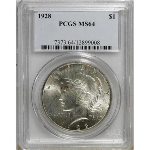 <B>1928 $1 MS64 PCGS.</B></I> This lustrous near-Gem displays dappled medium gray and gold patina, along with sharply struck design elements. A few minor marks limit the grade.<BR><BR><B>Coin Engraver:</B> Anthony de Francisci<BR><BR><b>Shipping:</b> Coins & Currency (<a target="_blank" href="http://www.heritageauctions.com/common/shipping.php">view shipping information</a>)