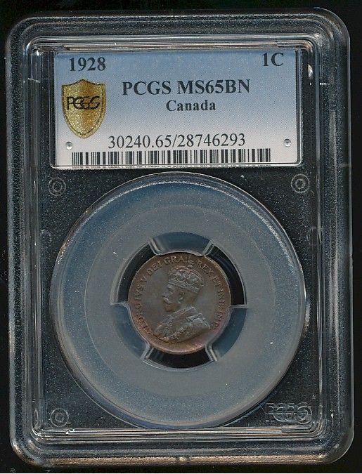 1928 1¢ PCGS MS65BN. Strong lustre.