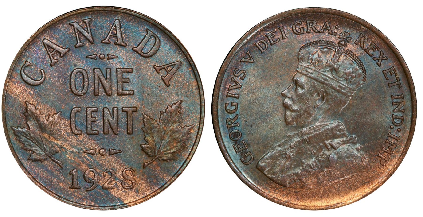 1928 1¢ PCGS/NGC Very Choice Choice Mint State-64BN. Sharp bluish tints.