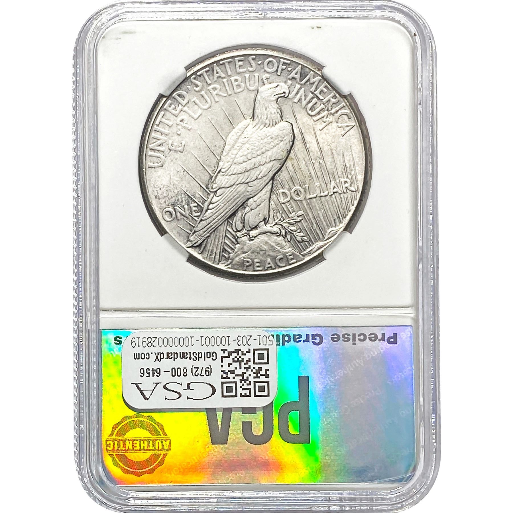 e. Coins sold referencing a third-party grading service are sold “AS IS” without any express or implied warranty, except for a guarantee by GSA that they are genuine. Removal or alteration of the holder, voids all of Bidder’s claims concerning that Product. Certain warranties may be available from the grading services and Bidders are referred to them for further details: Numismatic Guaranty Corporation (NGC), PO Box 4776, Sarasota, FL 34230, www.ngccoin.com/services/writtenguarantee.asp; Professional Coin Grading Services (PCGS), PO Box 9458, Newport Beach, CA 92658, www.pcgs.com/guarantee.html; ANACS, 6555 S. Kenton St., Ste. 303, Englewood, CO 80111; and Independent Coin Grading Co. (ICG), 7901 East Bellview, Ave., Suite 50, Englewood, CO 80111.